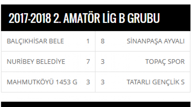 2.Amatör ligin 5.Haftasında B grubu lideri Nuribey Belediyespor Topaçspor ile karşıkarşıya geldi.Karşılaşmayı Nuribey Belediyespor 7-3 kazandı. Grubunda ligde 2.liği Taşoluk Belediyespor ile 3.lüğü ise Sinanpaşa Ayvalıspor aldı. 2.Sıradaki Taşoluk Belediyespor'un Lider Nuribey Belediyespor'u 1 farkla yakın takibi ise devam ediyor.