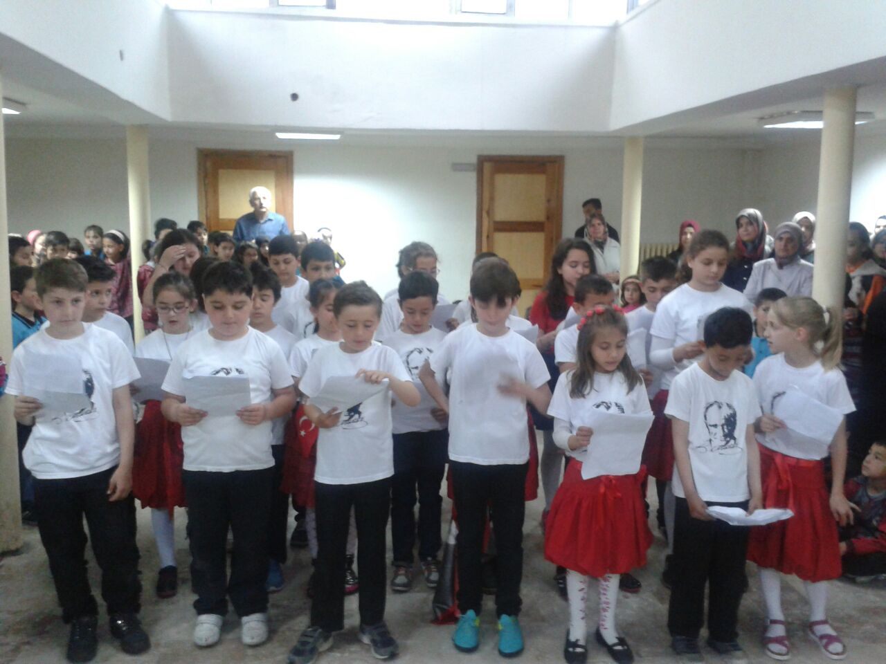 KURTULUŞ-27 Ağustos İlköğretim Okulu’nda “19 Mayıs Atatürk’ü Anma, Gençlik ve Spor Bayramı” coşku içerisinde kutlandı. Yağmur dolayısı ile konferans salonunda gerçekleştirilen kutlama etkinliğinde 4-B sınıfı öğrencileri sahneye üzerinde Atatürk resimlerinin olduğu tişörtler ile çıktı. Sınıf öğretmeni Sevgi Kaya öncülüğünde hazırlanan programda öğrenciler oluşturdukları şiir ve şarkı koroları ile 19 Mayıs’ı anlatan şiirler okuyup şarkılar söyledi. Minikler bağımsızlık meşalesinin yakıldığı gün olan 19 Mayıs’ı anlatan şiirler okurken programa katılan bir çok velinin duygulandığı gözlendi. Etkinlikte ayrıca çeşitli oyunlarda oynandı. Coşku içerisinde gerçekleştirilen 19 Mayıs kutlamaları yaklaşık bir saat sürdü.