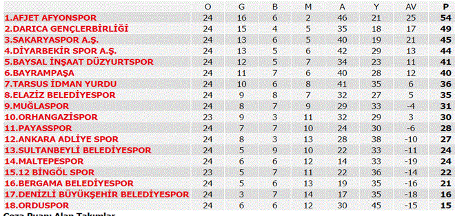 Afjet Afyonspor'un şampiyonluk mücadelesi verdiği 3.Lig 3.Grupta haftanın sonuçları, puan durumu ve gelecek haftanın programı