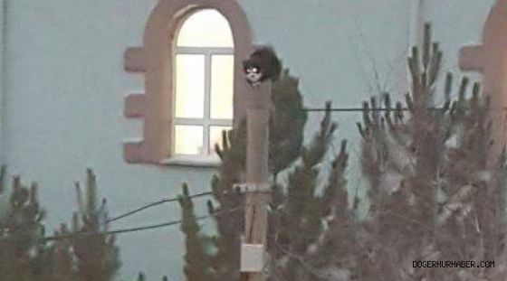Olayın Döğer Fatih mahallesi, ali emre cami yakınında meydana geldiği bildirildi. Mahallede köpek tarafından kovalanan kedinin, çareyi direğin tepesine çıkmakta bulduğu ifade edildi.
