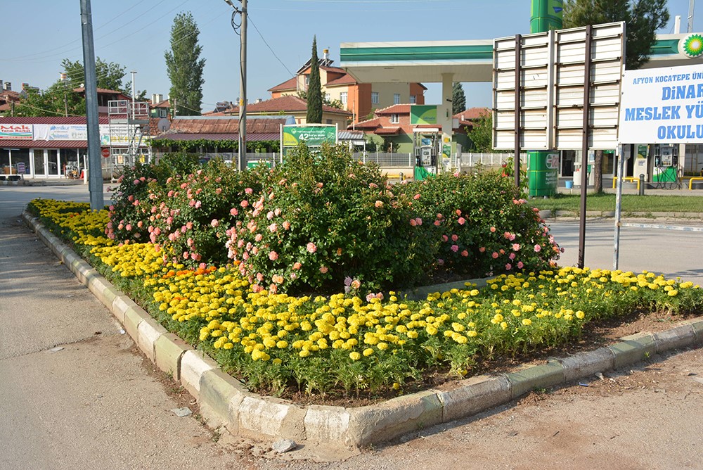 Dinar’ın orta yol refüjlerine, döner kavşaklara, parklara ve uygun alanlara park bahçe ekipleri tarafından 43 bin adet; dalya, kadife türü, begonya, betonya, ateş, yeniğine ve yıldız çiçeklerinin dikimi yapıldı.