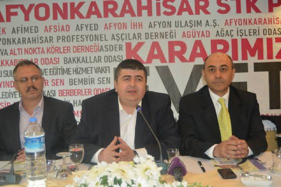 Bizler Afyonkarahisar'lı sivil toplum örgütleri olarak biliyoruz ki, güçlü bir Türkiye'ye, istikrarlı bir Türkiye'ye, her türlü vesayetten kurtulmuş bir Türkiye'ye, karşı olan tüm Türkiye düşmanları el ele ve işbirliği içinde yeni Anayasaya hayır diyorlar. İşte onlar hayır dediği için biz Evet diyoruz, Evet diyeceğiz.