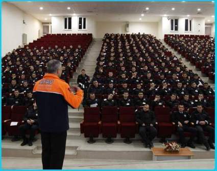 Afyonkarahisar İl Afet ve Acil Durum Müdürlüğü’nün (AFAD) kurumlara Kimyasal, Biyolojik, Radyolojik ve Nükleer (KBRN) eğitimleri sürüyor. İl Afet ve Acil Durum Müdürlüğü uzman personellerinden oluşan ekipler, ‘Afete Hazır Türkiye’ kapsamında Afyonkarahisar Polis Meslek Eğitim Merkezinde öğrenim gören polis adaylarına Afet Bilinci Eğitimi ve KBRN farkındalık eğitimi verdi.Kurtuluş
