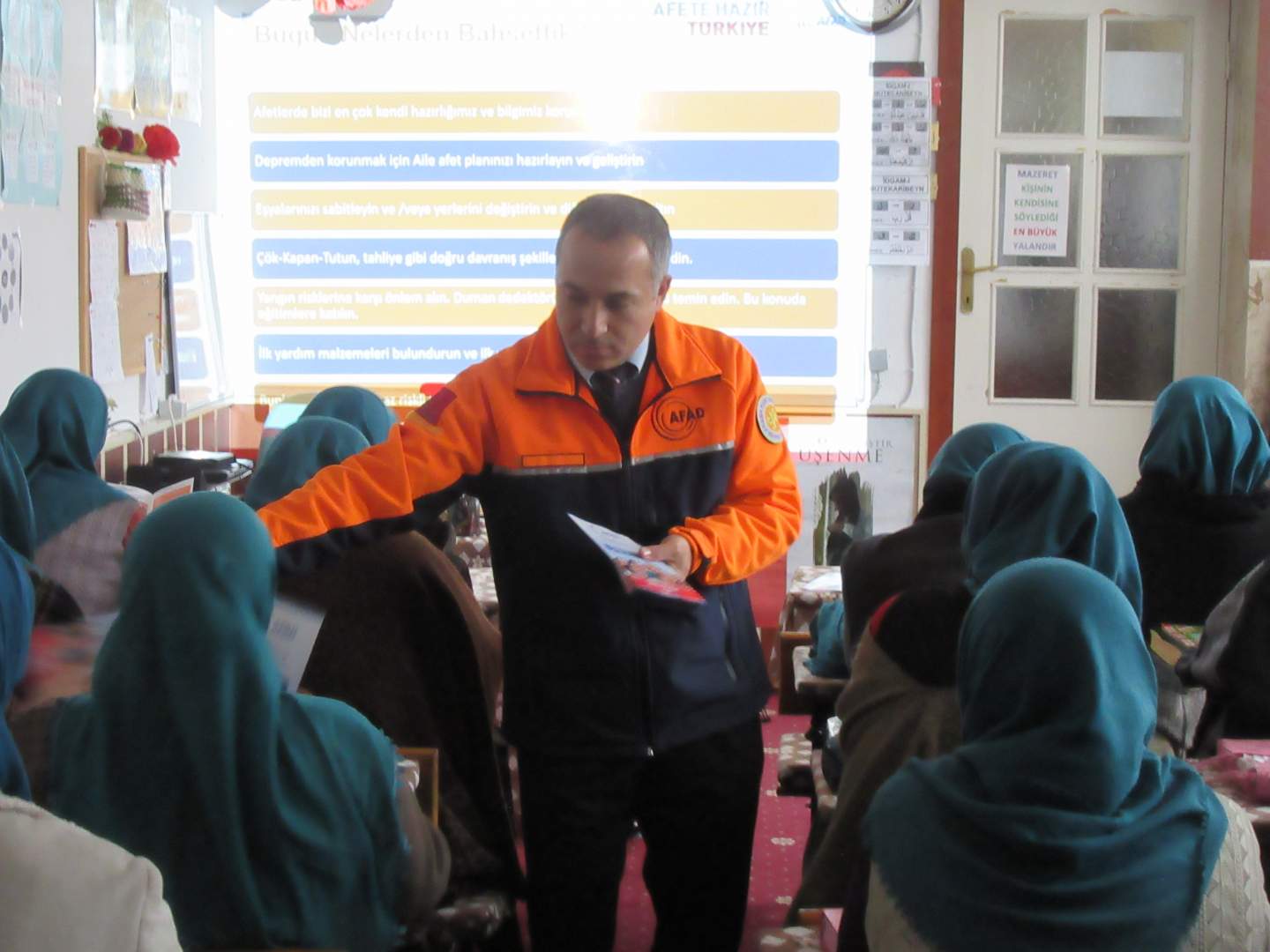 Afyonkarahisar İl Afet ve Acil Durum Müdürlüğü’nden verilen bilgi şöyle: “Afyonkarahisar İl Müftülüğü ve İl Afet ve Acil Durum Müdürlüğümüz işbirliği ile Diyanete bağlı 132 adet Kur’an Kursunda 18 Ocak 2017 tarihi itibariyle AFAD Afyonkarahisar uzman personeli tarafından Kur’an Kursu öğretici ve kursiyerlerine yönelik Afete Hazır Türkiye Projesi kapsamında yangın ve deprem güvenliği konularında afet bilinci eğitimleri verilmeye başlandı. Afet ve acil durum eğitimlerimizde ilimizin tüm kesimlerini kapsayacak şekilde eğitimlerimize devam ediyoruz.”●Gökhan Yılmaz