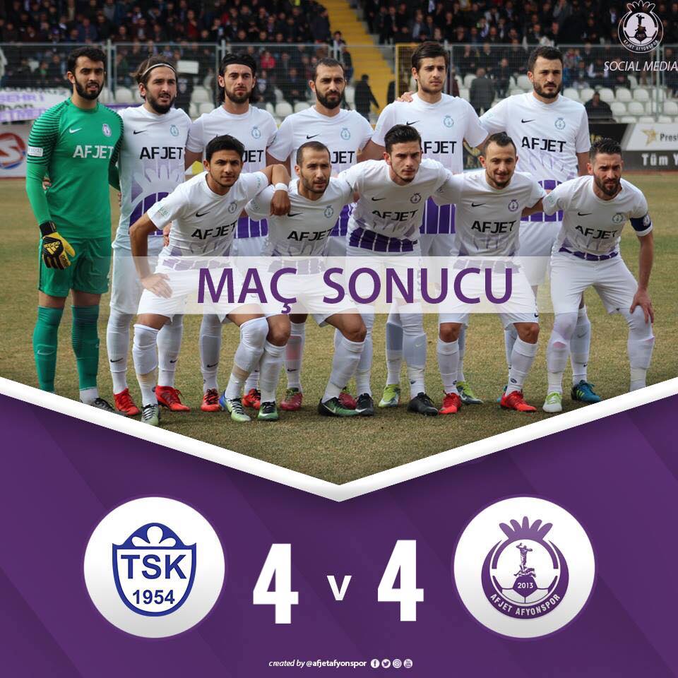 TFF 2.Lig Kırmızı Grup 21. haftasında, Afjet Afyonspor, grupta son sıralarda bulunan Tuzlaspor'la 4-4 berabere kalarak 2 puan kaybetti.