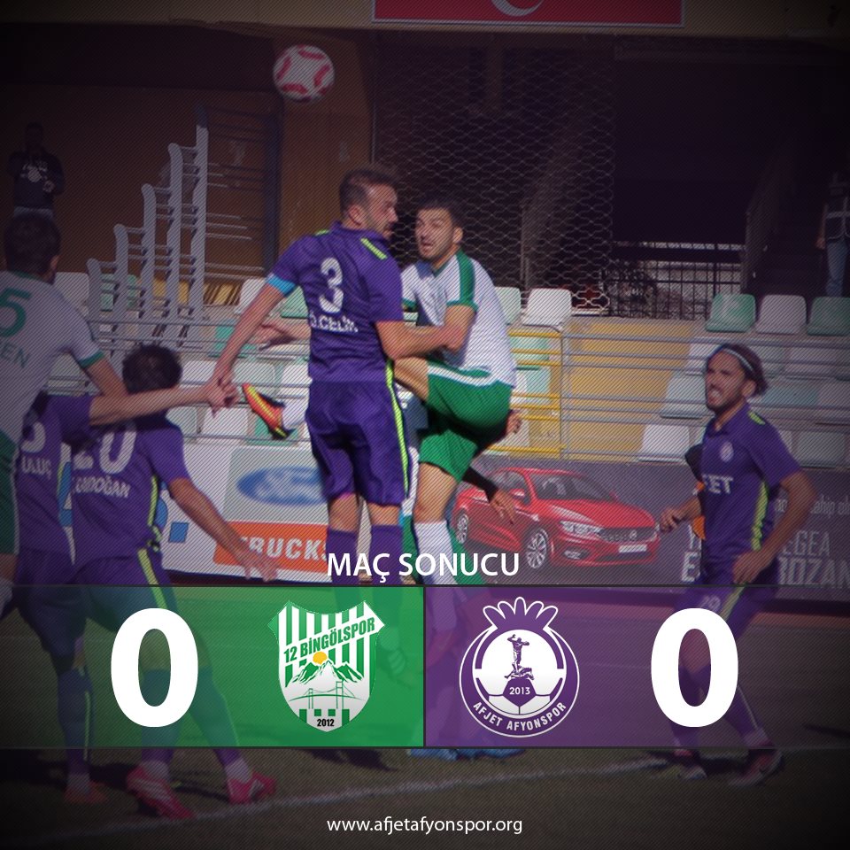 Afjet Afyonspor, Spor Toto 3. Lig 3. Grup 29. hafta maçında dün saat 15:00'te, 12 Bingölspor ile karşı karşıya geldi. Bingöl Şehir Stadı’nda,12 Bingölspor’un cezası nedeniyle seyircisiz oynanan karşılaşmaydı. Çanakkale bölgesi hakemlerinden Ali Şansalan yönetti. Yardımcılıklarını Deniz Turgut ve Bilal Gölen yaptı.