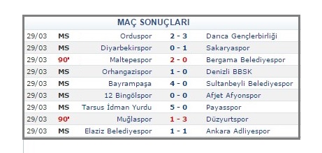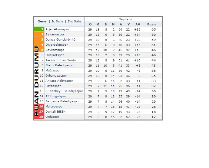 Ligde 3. sırda yer alan Darıca Gençler Birliği, Ordu deplasmanında, Spor Toto 3. Lig 3. Grup’ta son sırada bulunan Orduspor’u 2-3’lük skorla geçti. Afjet Afyonspor, Bingölspor’dan aldığı 1 puanla puanını 65’e yükseltirken, Sakaryaspor 60, Darıca Gençler Birliği de 59 puana yükseldi.●POLAT YILMAZ
