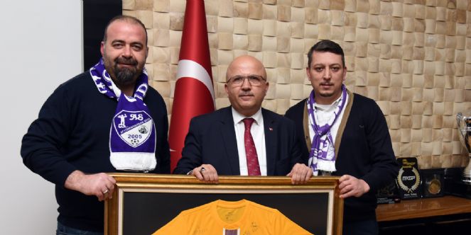 Belediye Başkanı Burhanettin Çoban AFJET Afyonspor taraftar guruplarından olan AFYOK Grubu’nu makamında kabul etti. AFYOK Grup Başkanı Hüseyin Arıcan ve Başkan Yardımcısı Melih Şallı, Belediye Başkanı Burhanettin Çoban’a teşekkür ziyaretinde bulundu.