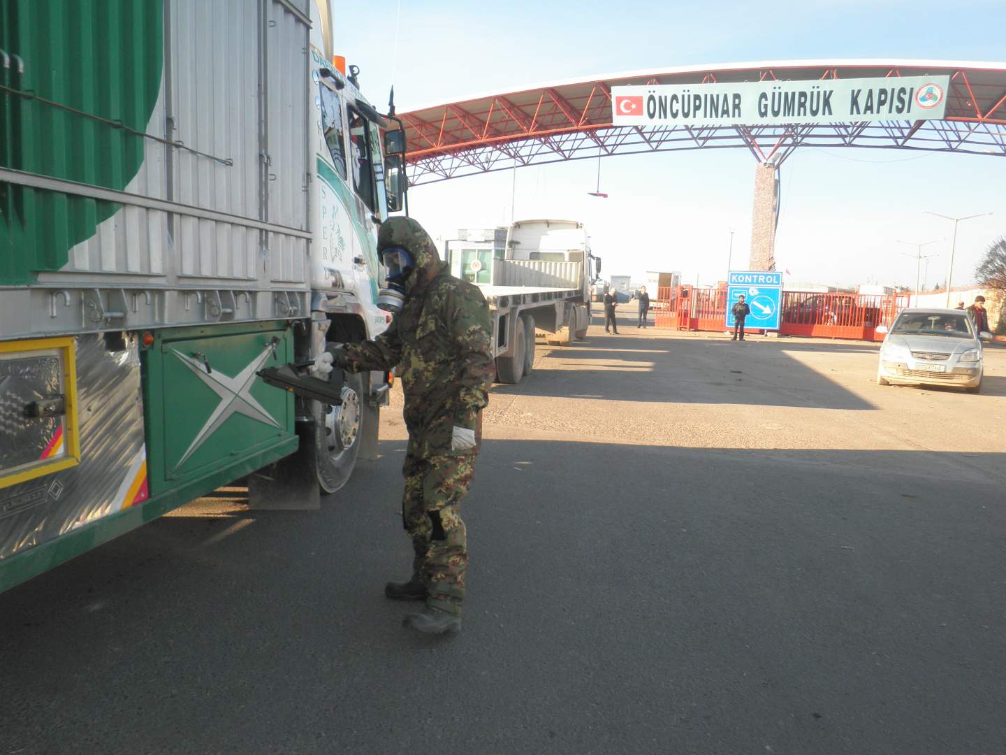 Afyonkarahisar İl Afet ve Acil Durum Müdürlüğüne bağlı Arama ve Kurtarma Birliği KBRN Ekipleri, Suriye Arap Cumhuriyeti' den ülkemize yönelik gerçekleşmekte olan nüfus hareketleri nedeni ile Kilis İlinde faaliyette olan konteynır kent ve çadır kentler ile sınır kapılarında yaşanabilecek olası kimyasal ve biyolojik silah saldırısı riskini tespit etmek, yerinde ve hızlı müdahalede bulunabilmek amacı Kilis’te görevlendirildi.