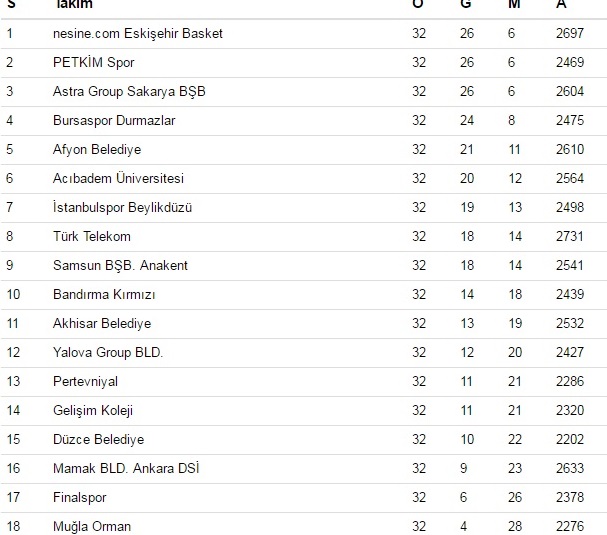 İlk üç sırayı Astra Group Sakarya Büyükşehir Belediye, PETKİM ve Eskişehir Basket alacak ama hangisinin birinci, hangisinin, hangisinin üçüncü olacağını son maçlar ortaya çıkaracak.
