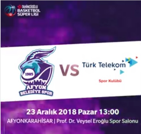 Tahincioğlu Basketbol Süper Ligi'nde 12.Haftamücadelesinde Temsilcimiz Afyon Belediyespor Basketbol takımı bu hafta kendi evinde Türk Telekom’u konuk edecek.