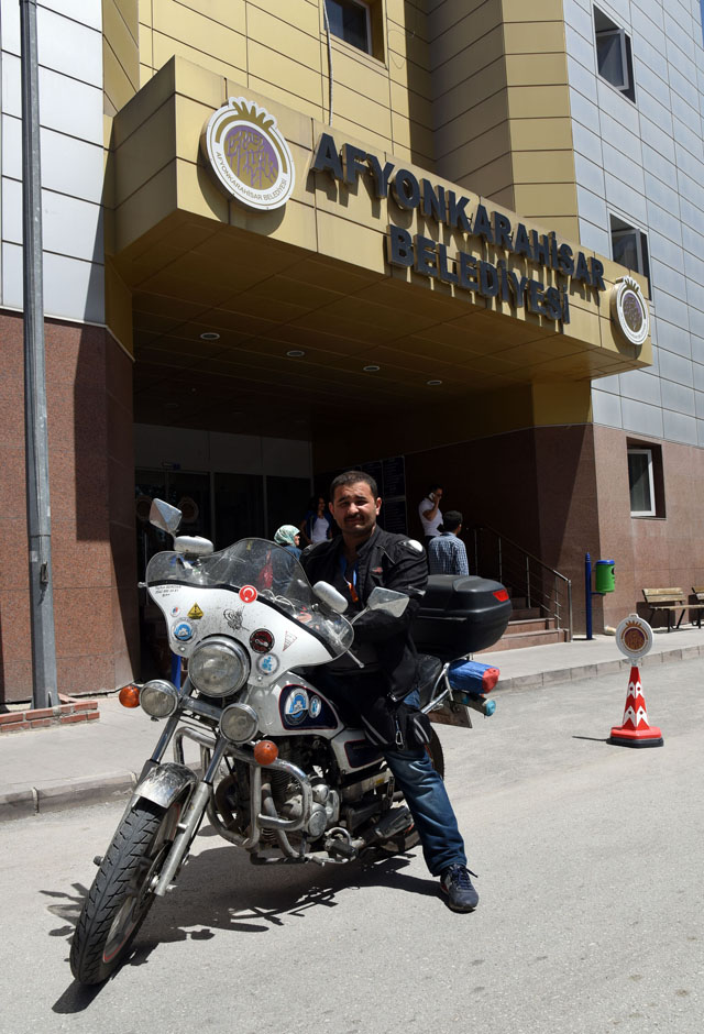 Engelli vatandaşların sorunlarına dikkat çekmek amacıyla "Engelimin çizgide son buluşu" adı altında 6 Haziran'da başlattığı projeyle motosikletiyle tüm şehirleri gezmeyi planlayan Türkiye Sakatlar Derneği Trabzon Şube Başkanı Tayfun Serdar'ın 31. durağı Afyonkarahisar oldu.