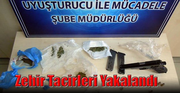 Zanlıların üzerleri ve araçlarındaki aramada, bir miktar uyuşturucu ile ruhsatsız 9 milimetre çaplı tabanca ve 7 fişek ele geçirildi.