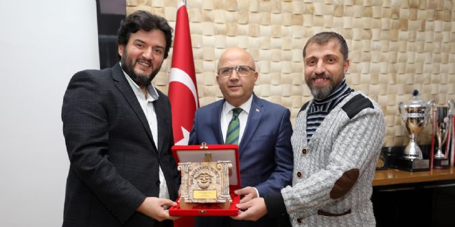 Ödül törenin ardından, Belediye Şehir Tiyatrosu Genel Sanat Yönetmeni Hasan H. Elmas ve Sahne Amiri Yusuf Agunsoy'u makamında kabul eden Belediye Başkanı Burhanettin Çoban, tiyatrocularımızı bu başarılarından dolayı tebrik etti.