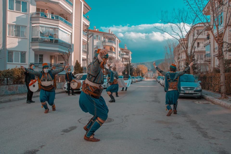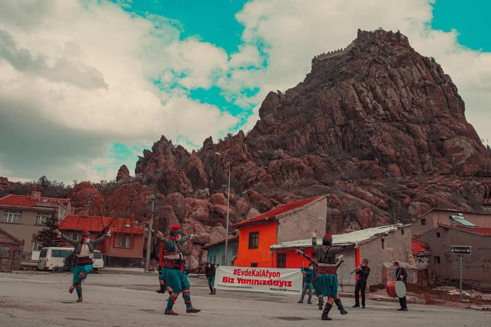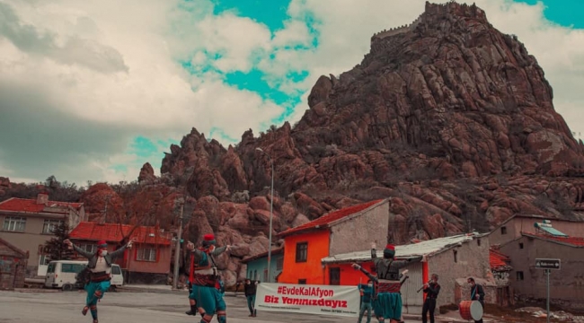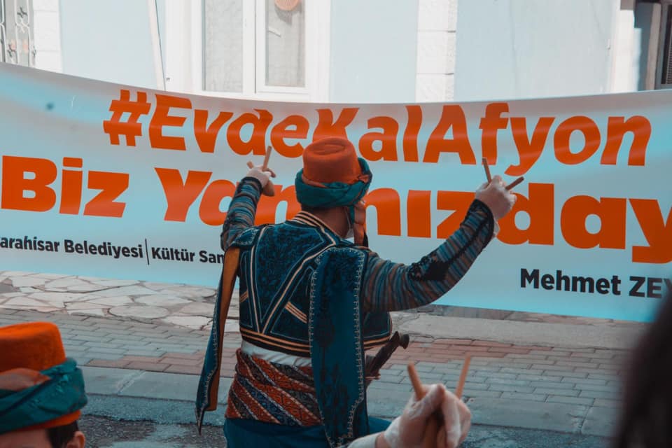 Afyonkarahisar Belediyesi Kültür Sanat Akademisi ekipleri #EvdeKalAfyon sloganıyla güzel şehrimizin caddelerini ve sokaklarını şenlendirerek evden çıkamayan vatandaşlarımız ile 65 yaş üstü evden çıkma yasağı bulunan vatandaşlarımıza hoş vakit geçirmelerini sağlıyorlar.