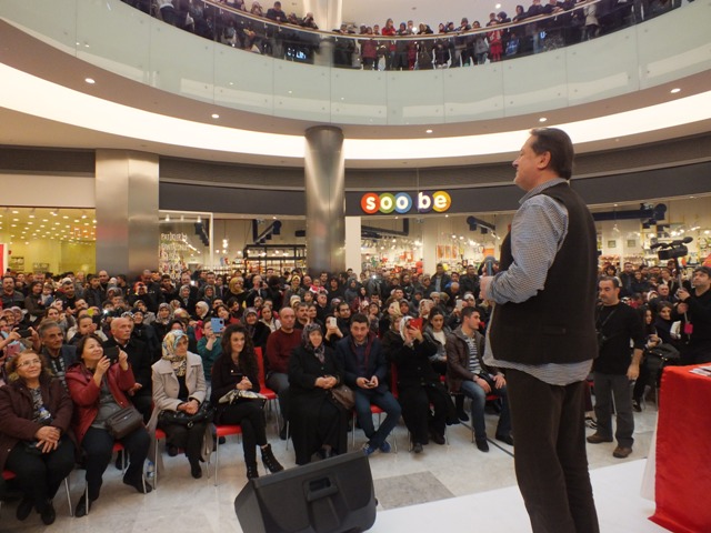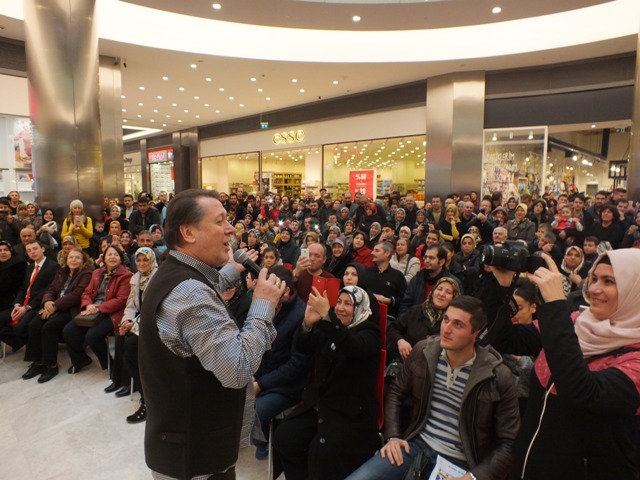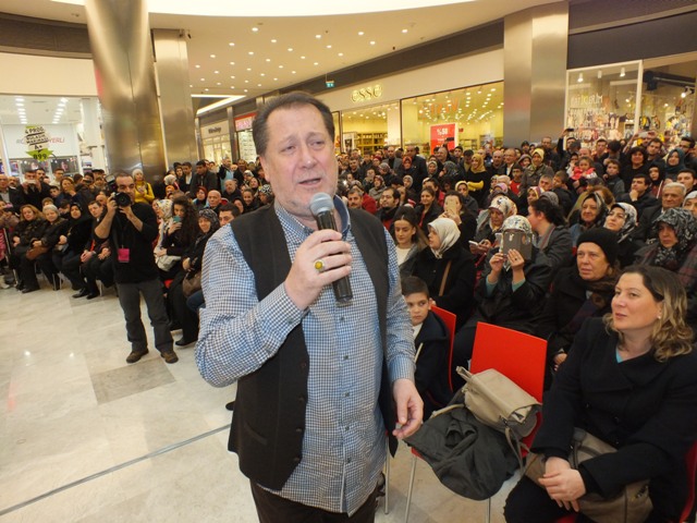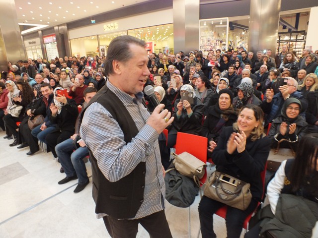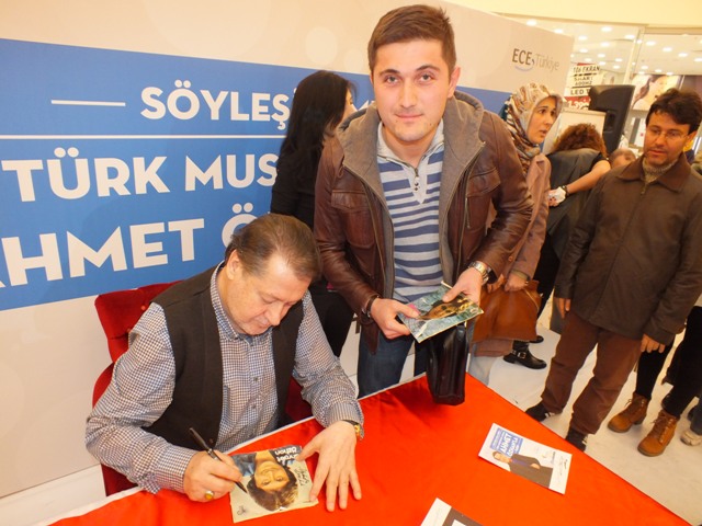 Konuşmaların ardından Özhan, sevenlerine kendi fotoğrafının olduğu ilanları imzaladı.