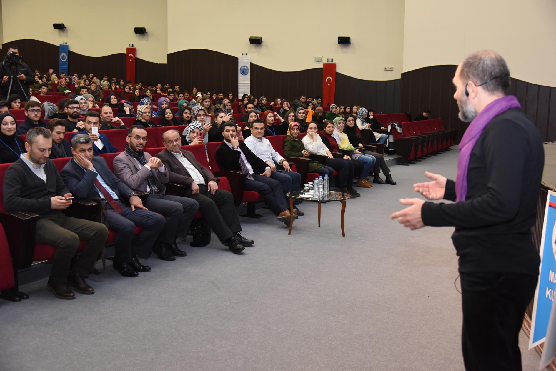 Atatürk Kongre Merkezinde gerçekleştirilen “İnsan ve İletişim” konulu konferansa AKÜ Rektör Yardımcısı ve Maliye Bölüm Başkanı Prof. Dr. İsa Sağbaş, İktisadi ve İdari Bilimler Fakültesi Dekanı Prof. Dr. Tuğrul Kandemir ve Hukuk Fakültesi Dekan V. Prof. Dr. Hasan Hüseyin Bayraklı ile birlikte çok sayıda öğretim üyesi ve öğrenci katıldı.