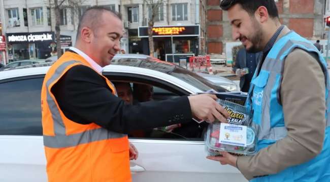 AK Parti Afyonkarahisar İl Gençlik Kolları Başkanı Ethem Karahan ve ekibi 'İftara Beş Kala' programında, Afyonkarahisar’da oruçlarını açmak için evine yetişemeyen vatandaşlara hurma, kek, meyve suyu ve su ikram ediyor.