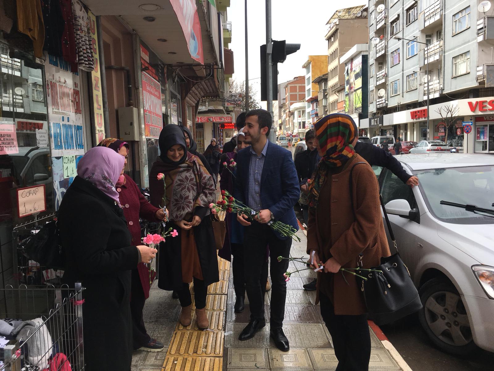 AK Parti İl Gençlik Kolları üyeleri, 8 Mart Dünya Kadınlar Günü dolayısıyla kadınlara karanfil