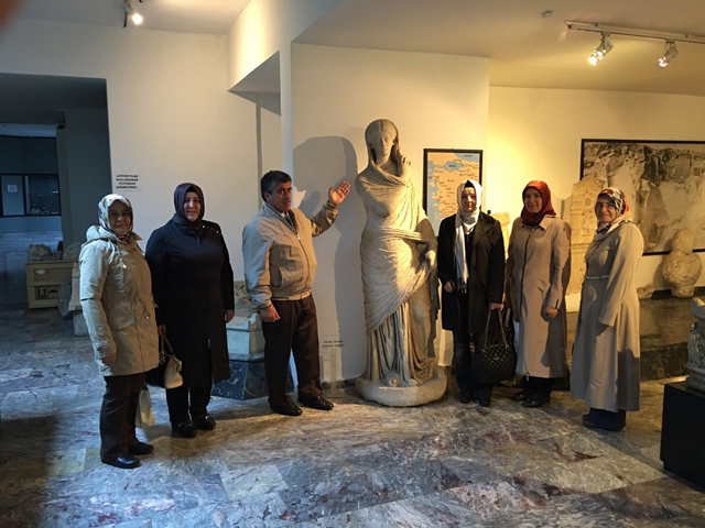 18-24 Mayıs Müzeler haftası dolayısıyla Afyonkarahisar Müze Müdürü Mevlüt Üyümez’i ziyaret ederek, müzeyi gezen İl Kadın Kolları Başkanı Av. Ferda Ertürk ve yönetim kurulu üyeleri, tarihe ışık tutacak tarihi kalıntıları incelediler. Müzeler haftası nedeniyle Müze Müdürlüğünü ziyaret ettiklerini dile getiren İl Kadın Kolları Başkanı Ertürk, “Bilindiği gibi 18-24Mayıs tarihleri arası Müzeler haftası olarak idrak edilmektedir. Bizler de Ak Parti Kadın Kolları olarak bu hafta münasebetiyle sayın müdürümüzü ve müzemizi ziyaret ederek bu haftanın önemine dikkat çekmek istedik. Çünkü müzeler insanoğlunun tarihine, sanat, bilim ve kültürüne ışık tutan geçmişte yaşanan inanç, düşünüş ve yaşayış biçimlerini bize aktaran yegâne kültür varlıklarıdır. Geçmişimizi öğrenmek hiç şüphesiz bugünümüzü aydınlatır. Muasır medeniyetler arasında bizleri ayrıcalıklı kılan günümüze taşıyabildiğimiz tarih, kültür ve sanatımızdır. Bunlara sahip çıkıp günümüze aktarabilmemiz müzelerimiz ile mümkündür” dedi.