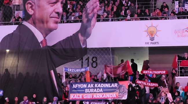Salonda AK Parti Afyonkarahisar Kadın Kolları teşkilatı “Afyon AK Kadınlar burada kale gibi arkanda” afişi astı. Afişe dikkat çeken Erdoğan “Afyonkarahisar 14 Mayıs seçimine hazır mı” çağrısı ile yanıt verdi.