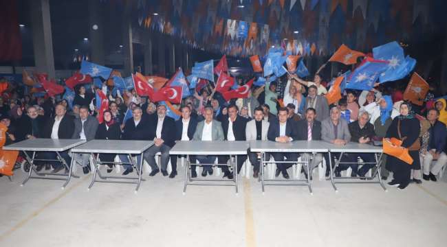 Burada ilk konuşmayı AK Parti İl Başkanı Hüseyin Ceylan Uluçay yaptı. Uluçay, “Rabb'im inşallah hep birlikte bu meydanda 14 Mayıs zaferini hep birlikte kutlamayı nasip etsin inşallah. Çok kıymetli hemşehrilerim. Ben il başkanı olarak her zaman sizlerin emrinizdeyim. Sizlerin talimatları, sizlerin talepleri olduğu zaman her zaman emrinizdeyiz. Bu başarılar, teşkilatlarla, milletvekillerimizle, belediye başkanımızla, belediye meclis üyelerimizce il genel meclis üyelerimizle yapılıyor. Ama en önemlisi sizlerin bize sandıklarda sahip çıkmasıyla oluyor. Ben il başkanı olarak, 14 Mayıs seçimlerinde sandıklara sahip çıkmanızı önemle rica ediyorum. 14 Mayıs'ta sandıklarımıza sahip çıkacak mıyız? Evet! Kapı kapı dolaşarak, bir bir oyları toplayacak mıyız? Evet Sayın Cumhurbaşkanımızı tekrar cumhurbaşkanı makamını hep birlikte en güçlü oylarıyla hep birlikte oturtacak mıyız? Evet. İnşallah biz de üzerimize düşen her türlü vazifeyi yapmak için buradan sizlere söz veriyoruz. Rabbim sizleri başımızdan eksik etmesin. Sizlerin desteğini hiçbir zaman arkamızdan eksik etmesin inşallah” dedi.