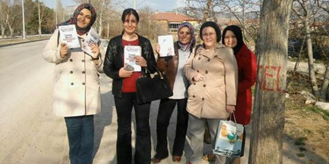 AK Parti Dinar Kadın Kolları ev ev broşür dağıtıyor