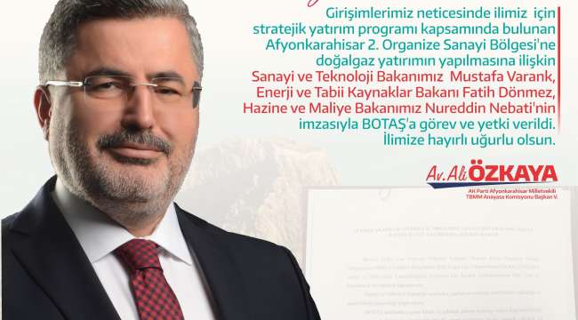 Ak Parti Milletvekili Ali Özkaya, yaptığı açıklamada, ilin stratejik yatırım programı kapsamında bulunan Afyonkarahisar 2. Organize Sanayi Bölgesi'ne (Sinanpaşa) doğalgaz yatırımının gerçekleştirilmesi için girişimlerde bulunduklarını belirtti. Bu girişimlerin sonucunda Sanayi ve Teknoloji Bakanı Mustafa Varank, Enerji ve Tabii Kaynaklar Bakanı Fatih Dönmez ve Hazine ve Maliye Bakanı Nureddin Nebati'nin imzalarıyla BOTAŞ'a görev ve yetki verildiğini ifade etti.