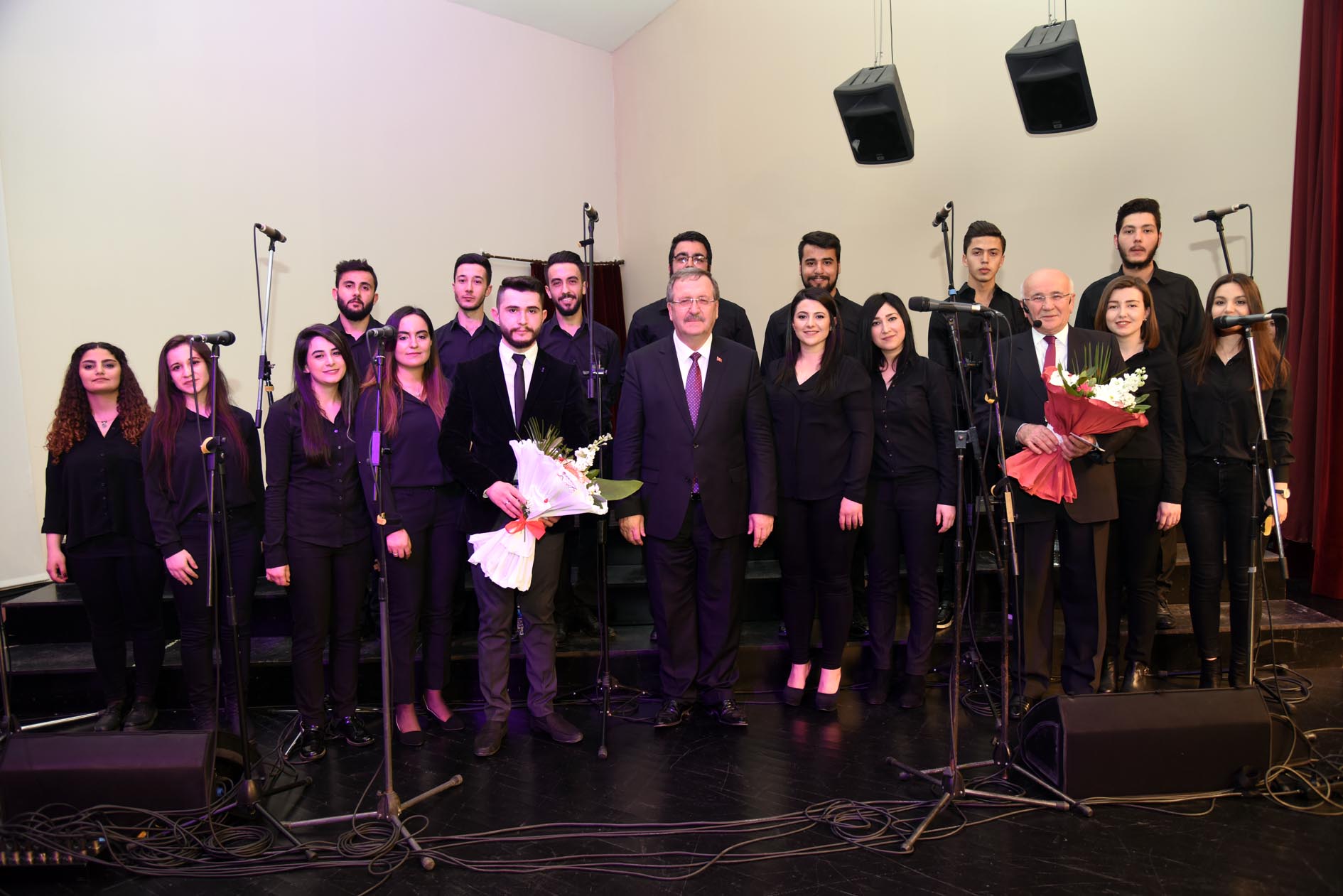 Atatürk Kongre Merkezinde düzenlenen ve şefliğini Ahmet Özen’in, orkestra sorumluluğunu Ömer Şahin’in ve koro sorumluluğunu Öğr. Elm. Hanife Gülnaz’ın yaptığı müzik dinletisine AKÜ Rektörü Prof. Dr. Mustafa Solak, Devlet Konservatuvarı Müdürü Prof. Dr. Uğur Türkmen ile beraber çok sayıda müziksever katıldı.