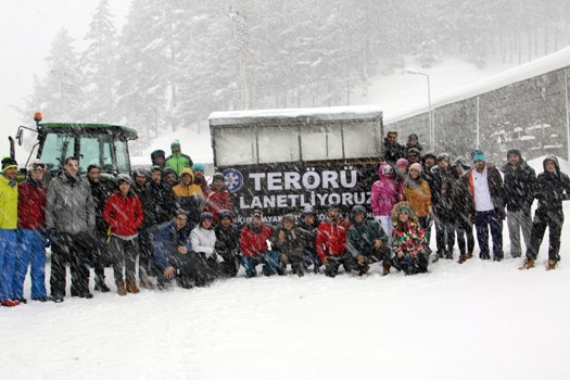 Öğrencilerin terörü lanetlemek için kendilerini taşıyan traktörün üzerine ‘Terörü lanetliyoruz’ yazdırdıklarını belirten Ocak, “Derslerde terör olaylarına olan duyarlılığı her zaman üst seviyede tutmak için bu yazıyı yazdırdık” diye konuştu.