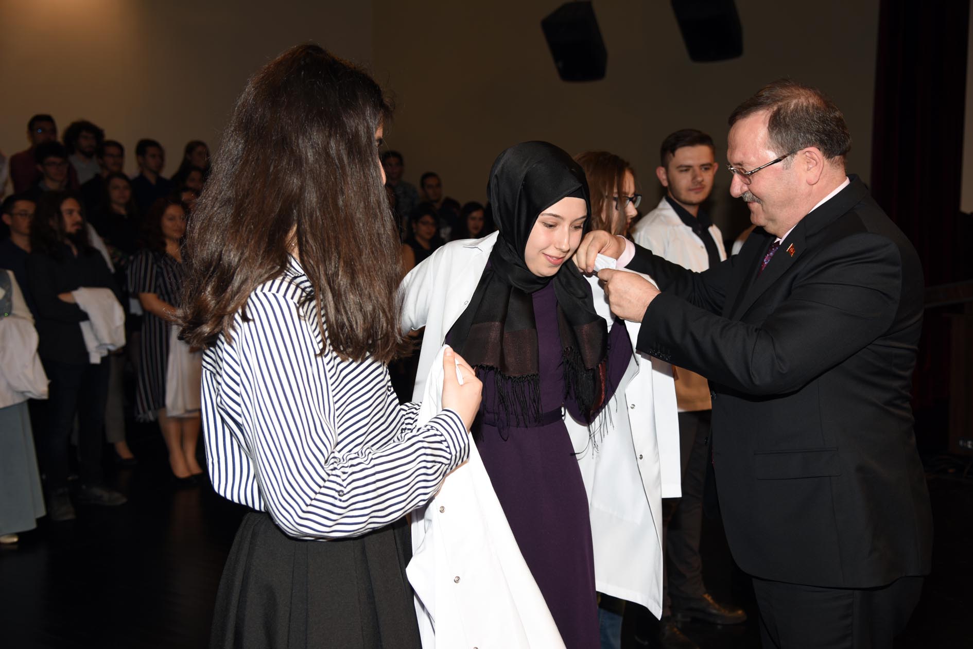 Tıp Fakültesi birinci sınıf öğrencilerinin beyaz önlüklerini giymesinin ardından tören, Tıp Fakültesi Bilimsel Araştırma Projelerinde dereceye giren üçüncü sınıf öğrencilerine ödüllerinin verilmesi ve düzenlenen kokteyl ile sona erdi.