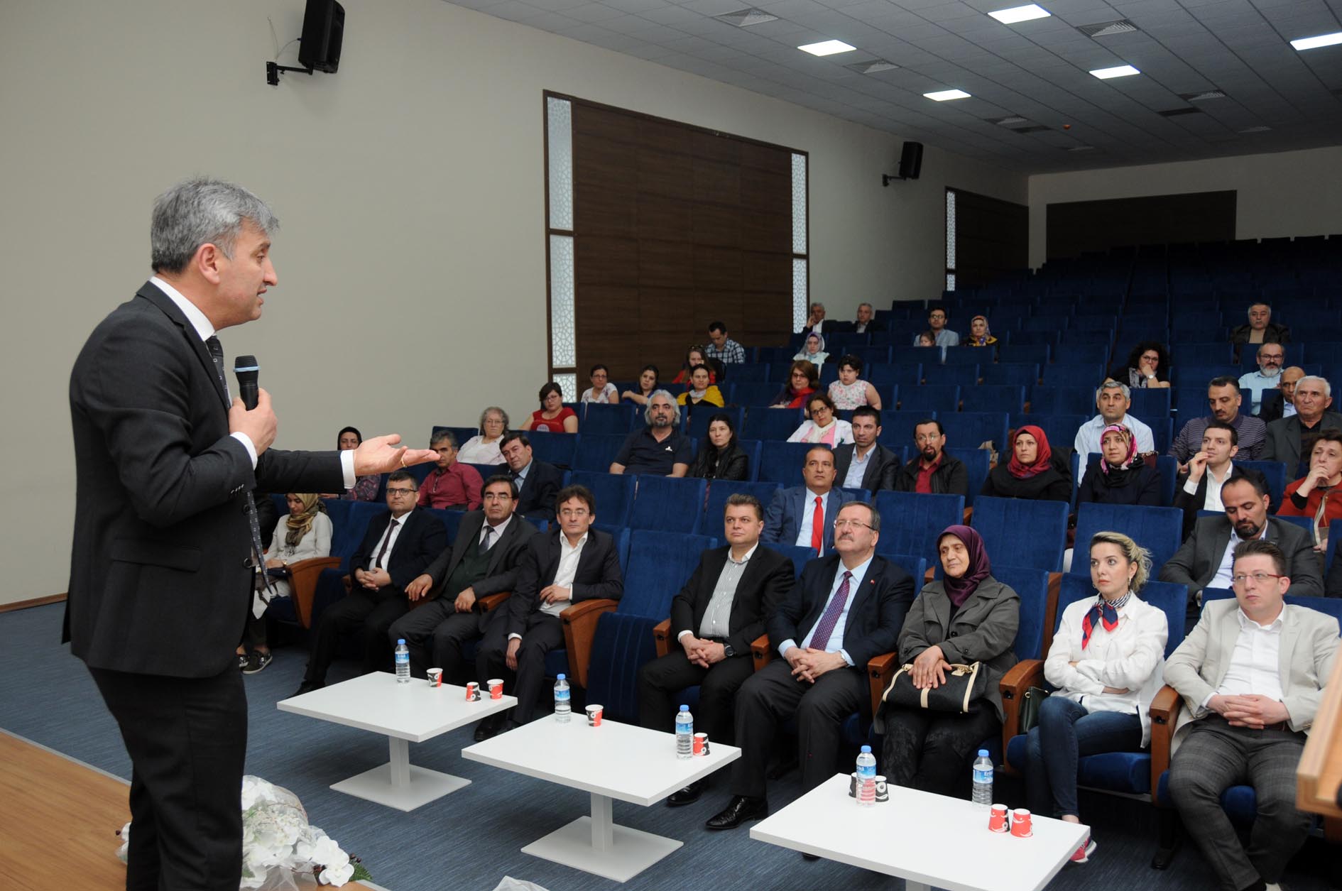 AKÜ Onkoloji ve Hematoloji Hastanesi Bilimsel Koordinatörü Doç. Dr. Mükremin Uysal ise “Afyonkarahisar’da Onkoloji-Hematoloji Hizmetleri Nereden Nereye- Kanserde Erken Teşhis ve Tarama İçin Ne Yapabilirim” konulu sunumunu gerçekleştirdi. Kanserin sadece onkoloji polikliniklerinde tedavi edilebilen bir hastalık olmadığını söyleyen Uysal, kanser hastalığında doğru bilgilenmenin tedavi kadar önemli olduğunun altını çizdi. Uysal, “Bizlerin görevi kliniklerimizden çıkarak bu toplantıda olduğu gibi kanserle ilgili doğru bilgiyi anlatmak olmalıdır. Çünkü hepimizin bildiği gibi kanser haberleri medyatik amaçlı reyting için tıklanma hilesi olarak kullanılıyor. Haberlerde flaş haber olarak geçip, en son yer alan haberi izletmek amacıyla kullanılan habere baktığımız zaman yeni olmayan bir şey olduğunu görüyoruz” dedi. Kanserin suiistimale açık bir konu olduğunu belirten Uysal, “Çıkar amaçlı tamamen ticari bir sektör var. Vicdanın yerine cüzdanın yer aldığı bir sektör var. Hem kanserden korkutuyor hem de oradan nemalanıyor. Faydası olmayınca da sen yanlış kullanmışsın deyip işin içinden çıkıyorlar. Tüm bunlardan yola çıkarak amacımız halka kanserle ilgili doğru bilginin ulaştırılması olmalıdır. Kanserin önlenebilir, tedavi edilebilir bir hastalık olduğu algısının yerleştirilmesi olmalıdır. Bu organizasyon bunların bir başlangıcıdır” şeklinde konuştu.