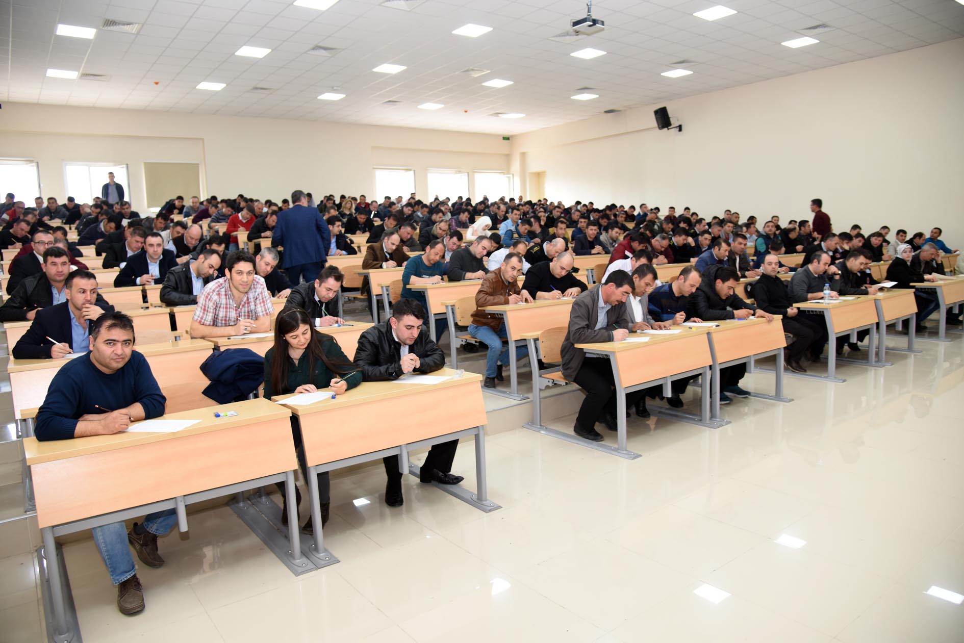 Tıp Fakültesi binası içerisinde toplam 8 salonda yapılan ve bin 82 kişinin girmeye hak kazandığı kadroya geçiş sınavı bin 79 aday ile gerçekleştirildi. 3 kişinin katılmadığı sınavda kişilere görev yaptıkları alanlar ile ilgili çoktan seçmeli soruların yer aldığı sınav uygulandı.