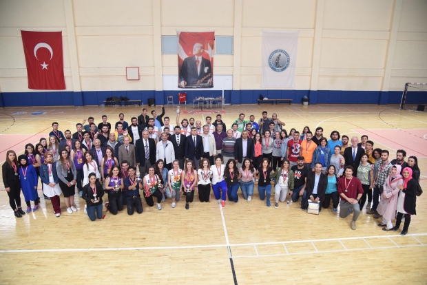 Madalya almaya hak kazanan sporculara madalya ve kupaları üniversite protokolü tarafından takdim edildi.