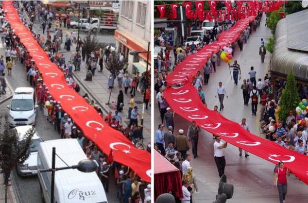 Akut’tan Şehit cenazesinde 1 kilometrelik dev Türk Bayrağı