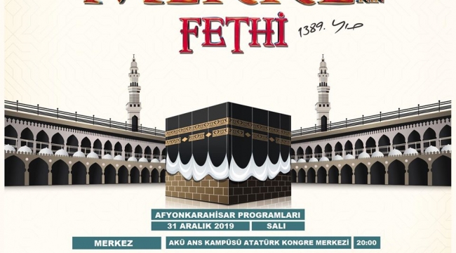 Anadolu Gençlik Derneği Afyonkarahisar Şubesi Mekkenin Fethi Programına ilişkin yazılı bir açıklama yaparak tüm afyonluları programa davet ederken programın bu yıl Bolvadin ve Sandıklı’da da icra edileceğini açıkladı.