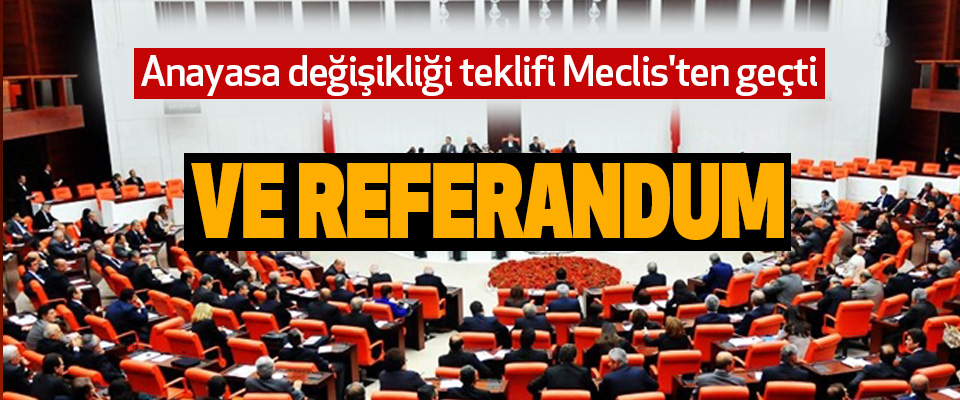 TBMM Genel Kurulunda, anayasa değişikliği teklifi 339 oyla kabul edilerek yasalaştı.