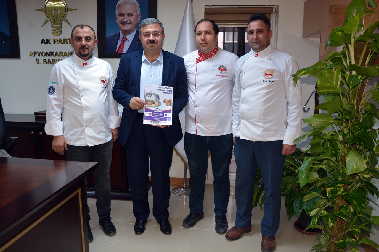 Sağlık turizmi başkenti Afyonkarahisar’da 18-20 Nisan 2018 tarihlerinde gerçekleşecek olan Gastro Afyon birbirinden renkli yarışmalara ev sahipliği yapacak. Afyonkarahisar Profesyonel Aşçılar Derneği Başkanı Hamza Kalkan İl Başkanı İbrahim Yurdunuseven’i ziyaret ederek hem hayırlı olsun dileklerinde bulundular, hem de yarışma hakkında bilgi verdiler. Afyonkarahisar Profesyonel Aşçılar Derneği (AFPAD) “Gastro Afyon 2018” yarışması düzenliyor. Yarışma birbirinden farklı şovlara ev sahipliği yapacak.