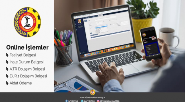 Koronavirüse karşı mücadele ve kamu sağlığını korumak amacıyla www.afyonkarahisartso.org.tr internet adresimizden Faaliyet Belgesi ile İhale Durum Belgesi alabilir; aidat ödeme işlemini gerçekleştirebilir; A .TR ve EUR .1 Dolaşım Belgeleri'ni onaylatabilirsiniz.