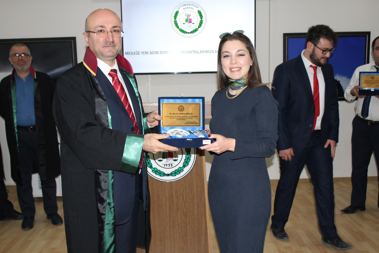 Kurgusal Duruşma yarışmasında Afyonkarahisar Barosunu başarıyla temsil eden stajyer avukatlar Talha Hüseyin Akkaya, Süleyman Ceylan, Hatice Kübra Turan, Kübra Akalın ve takım koçu Av. Oğuz Kaçan’a katkılarından dolayı teşekkür plaketini;