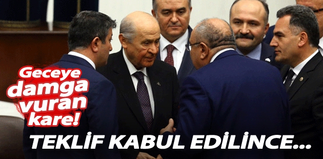 MHP Lideri Bahçeli, anayasa değişikliği teklifinin kabulüyle ilgili “milletimiz için hayırlı uğurlu olsun“ dedi. Bahçeli’nin Genel Kurul’da Tuğrul Türkeş ile uzun uzun konuşması dikkat çekti.