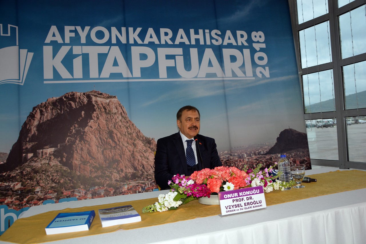 Fuarın onur konuğu Orman ve Su İşleri Bakanı Prof. Dr. Veysel Eroğlu’ydu. Törende bir konuşma yapan Bakan Eroğlu, “Kitap en iyi dosttur. İnsanın gelişmesi açısından en önemli unsur okumaktır. İslamiyet’te de ilk ayet oku emridir. Gerçekten okumak çok önemli. Ama maalesef biz çok okuyan bir toplum değiliz. Yurt dışına gittiğim zaman özellikle trenlerde bakıyorum yabancılar hemen oturuyor ve bulduğu her yerde kitap okuyor. Ancak bizde bu alışkanlık yok. Biz hemen cep telefonuna bakıyoruz. Eskiden atalarımız okumaya yazmaya çok önem vermiş. Tarihimizdeki en büyük kitabeleri atalarımız yazmış. Onlar okuyormuş, ancak git gide okuyan sayısı azaldı. Sayın Valimde ifade etti,
