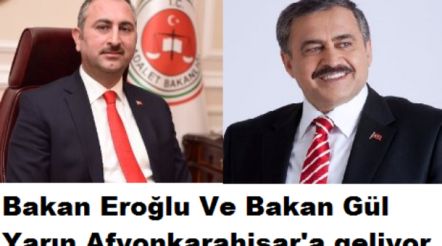 Orman ve Su İşleri Bakanı Prof. Dr. Veysel Eroğlu ile Adalet Bakanı Abdülhamit Gül bir dizi ziyaret için Afyonkarahisar’a geliyor.