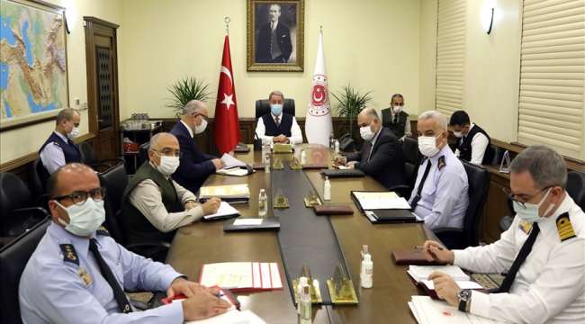 Millî Savunma Bakanı Hulusi Akar başkanlığında, Genelkurmay Başkanı Orgeneral Yaşar Güler, Kara Kuvvetleri Komutanı Orgeneral Ümit Dündar, Hava Kuvvetleri Komutanı Orgeneral Hasan Küçükakyüz ve Deniz Kuvvetleri Komutanı Oramiral Adnan Özbal ile Bakan Yardımcıları Yunus Emre Karaosmanoğlu ve Alpaslan Kavaklıoğlu'nun da katılımıyla video telekonferans toplantısı gerçekleştirildi.