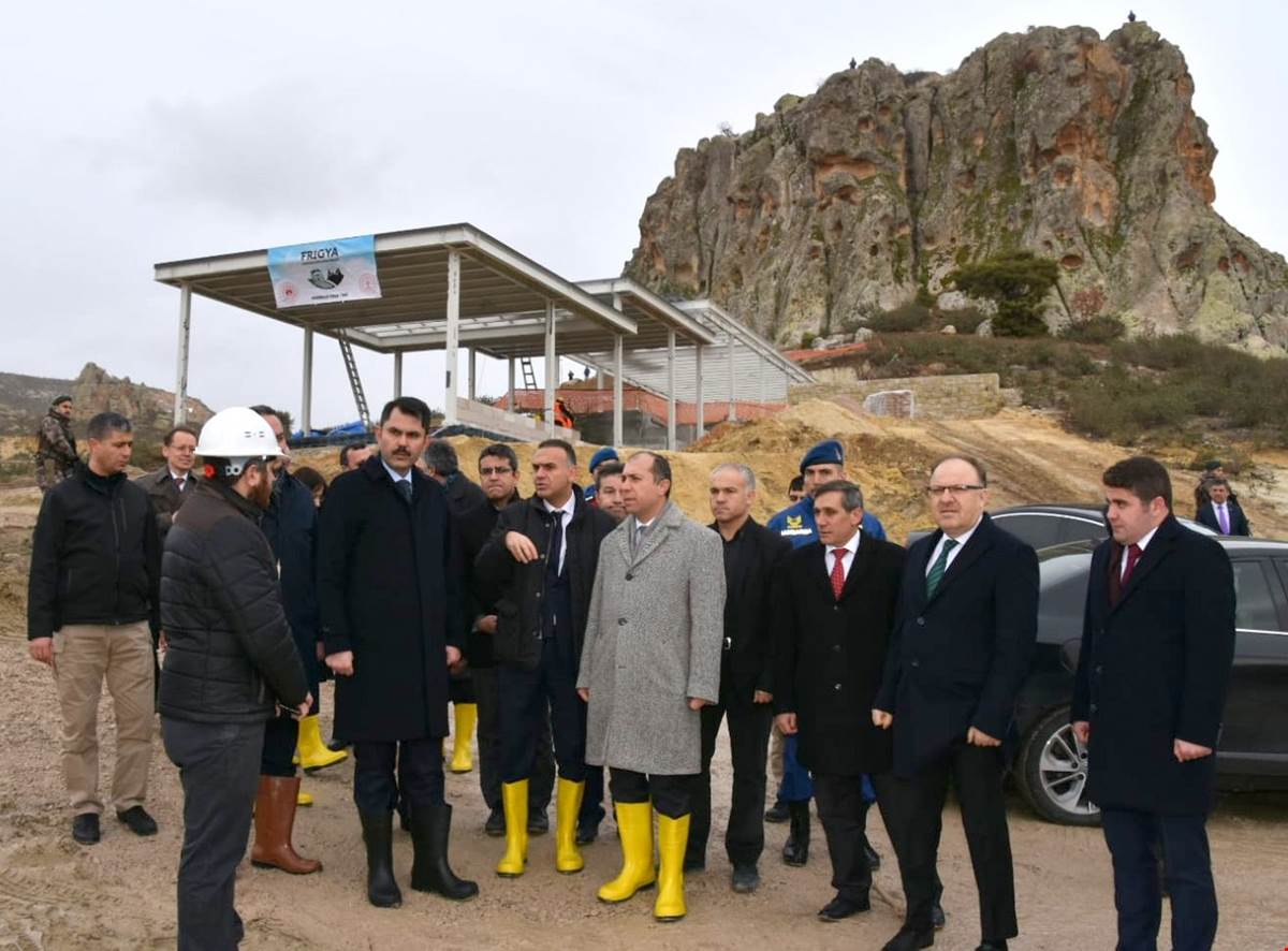 Bakan Kurum son Olarak İscehisar TOKİ konutlarındaki incelemenin ardından Cumhurbaşkanı Recep Tayyip Erdoğan'ın 100 günlük eylem planı kapsamında açıkladığı 'Anadolu Açık Hava Müzesi Frigya' inşaat alanında incelemelerde bulundu.