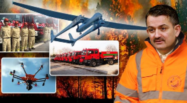 İkinci stratejilerinin ise önleme, yani erken uyarı, hızlı ve etkin müdahale olduğunu vurgulayan Pakdemirli 'Orman yangınlarını tespitte bu yıl ilk defa İHA'lardan faydalanmaya başlıyoruz. Ülke genelinde 776 yangın gözetleme kulesinden ormanlarımızı izliyoruz Yangından anında haberdar oluyor ve 1.140 noktada konuşlanmış ilk müdahale ekiplerimiz ile en kısa sürede yangınlara müdahale ediyoruz. Böylece yangınlara ilk müdahale süremizi 12 dakikaya indirdik." dedi.