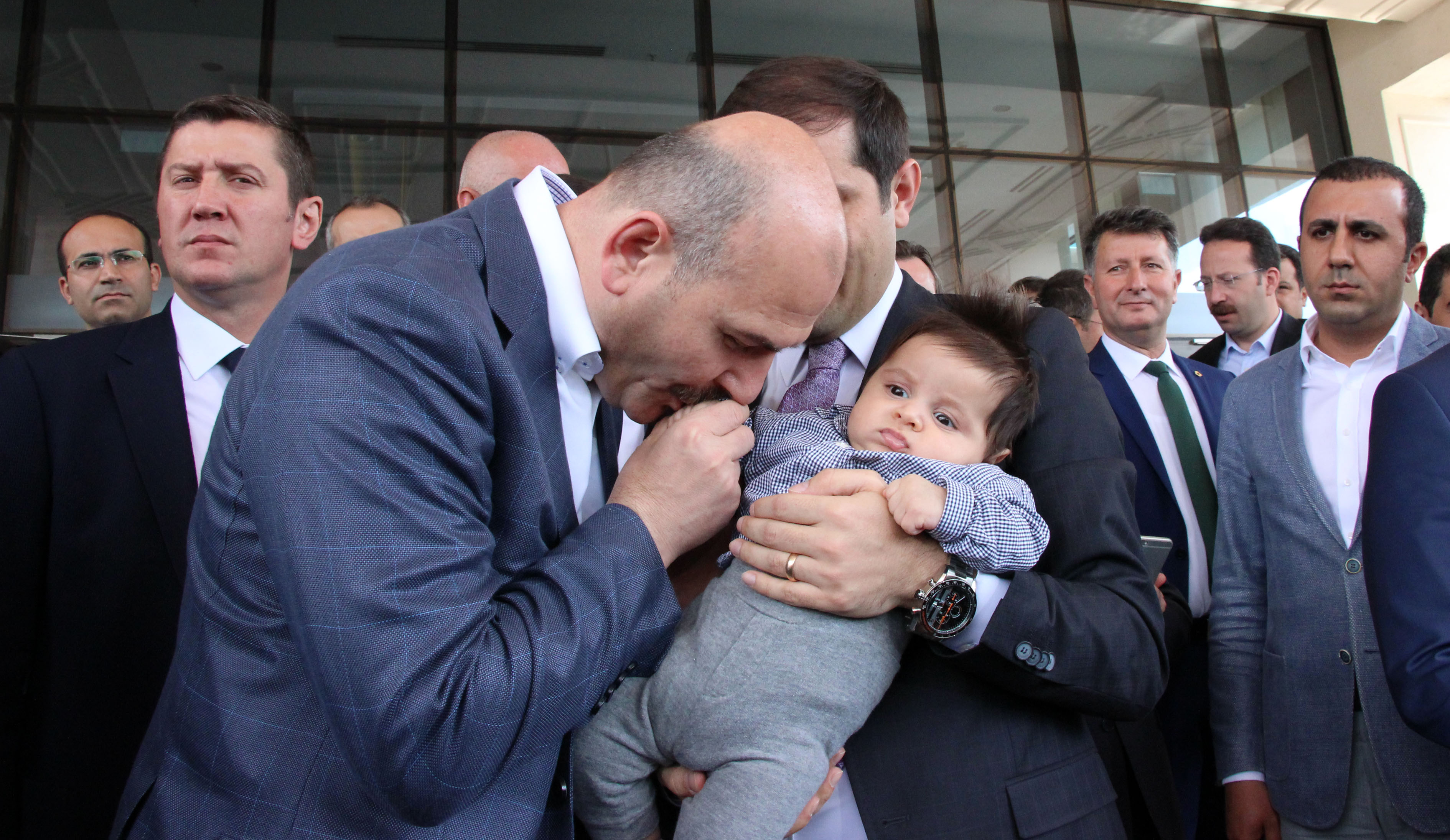 Afyonkarahisar'da Belediye Başkan Vekilleri 4'üncü Değerlendirme Toplantısı'na katılan İçişleri Bakanı Süleyman Soylu, toplantı sonrası otelde kalan bir vatandaşın Alp isimli bebeğini sevdi. Bakan Soylu, NG Afyon Termal Otel'de gerçekleştirilen Belediye Başkan Vekilleri 4'üncü Değerlendirme Toplantısı'na katıldı. Bakan Soylu'yu toplantı için geldiği otelde Afyonkarahisar Valisi Aziz Yıldırım ve protokol üyeleri karşıladı. Yaklaşık 3 saat otelde kalan Bakan Soylu, toplantıdan ayrılırken otelde konaklayanlarla sohbet etti. Bakan Soylu, Erkan İsa Erat adlı vatandaşın bebeği 'Alp' ile de yakından ilgilendi. Alp bebeğin elleri ve ayaklarını öpen Bakan Soylu, babasıyla sohbet etti. Bakan Soylu, basına kapalı gerçekleştirilen toplantının ardından İkbal Termal Otel'de düzenlenen bir başka toplantıya katılmak üzere otelden ayrıldı.