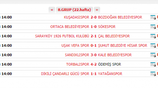 Deplasmanda oynayan Şuhut belediye hisarspor rakibini 90+4. dakikada salim akıncının golüyle 1-0 kazandı.Diğer temsilcimiz Sandıklıspor ise Kale Belediyespor'u kendi saha ve seyircisi önünde 3-0 kazanmasını bildi.