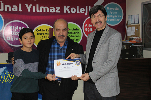 Dinar Ünal Yılmaz Kolejinde başlayan ve 8 hafta boyunca devam eden ‘Aile Okulu’ sona erdi. 40 öğrenci velisinin katıldığı aile okulunda veliler son derece bilinçlenerek diplomalarına kavuştu. Kendi çocuklarından diplomalarını alan veliler duygu ve düşüncelerini düzenlenen törende paylaştılar.