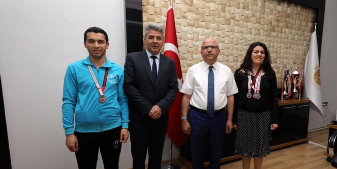 Bursa’da düzenlenen Türkiye Atletizm Şampiyonasına beş sporcuyla katıldıklarını ve ilimize beş madalya ile döndüklerini söyleyen Engelliler Meclis Başkanı Mesut Yurt, organizasyona katılımları konusunda Belediye Başkanı Burhanettin Çoban’dan büyük destek aldıklarını ifade ederek kendisine teşekkür etti. Başarılı atletler Kübra Saltık Sönmez, Çetin Sarıgül ve Gülbahar Olucak ise şampiyonada aldıkları 5 madalya ile Afyonkarahisarımızı en güzel şekilde temsil ettiklerini ifade ederek desteklerinden dolayı Başkan Çoban’a şükranlarını sundu. Ziyaretten duyduğu memnuniyeti ifade eden Belediye Başkanı Burhanettin Çoban ise sporcuları tebrik ederek başarılarının devamını diledi.
